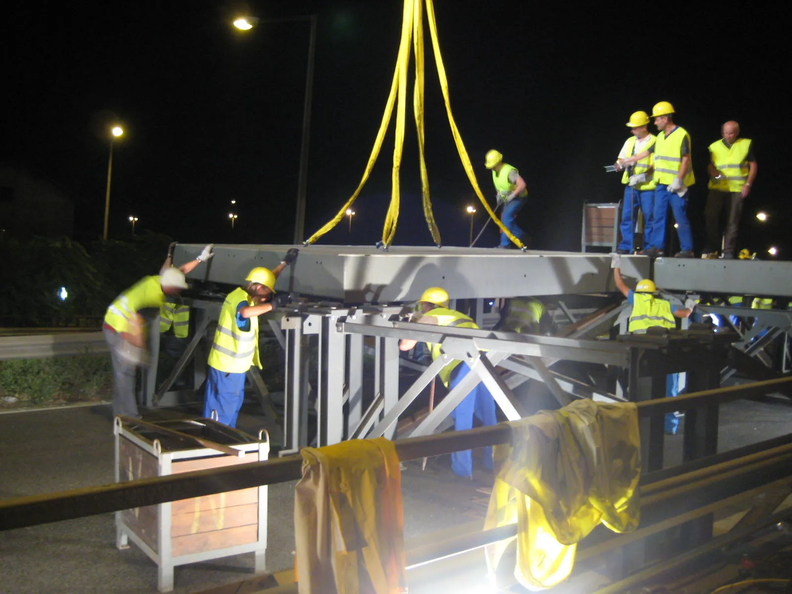 Beim Aufbau eines vierspurigen Fly Overs – z.B. auf der Tangente - werden rund 20.000 Einzelteile von etwa 45 Arbeitskräfte verbaut. Diese Einzelteile werden mit 16 Tiefladern in der richtigen Reihenfolge antransportiert und mittels Autokran verhoben, also eine Leistung die durchaus seine Zeit braucht. Aber das ist nicht alles, was einen Fly Over auszeichnet: