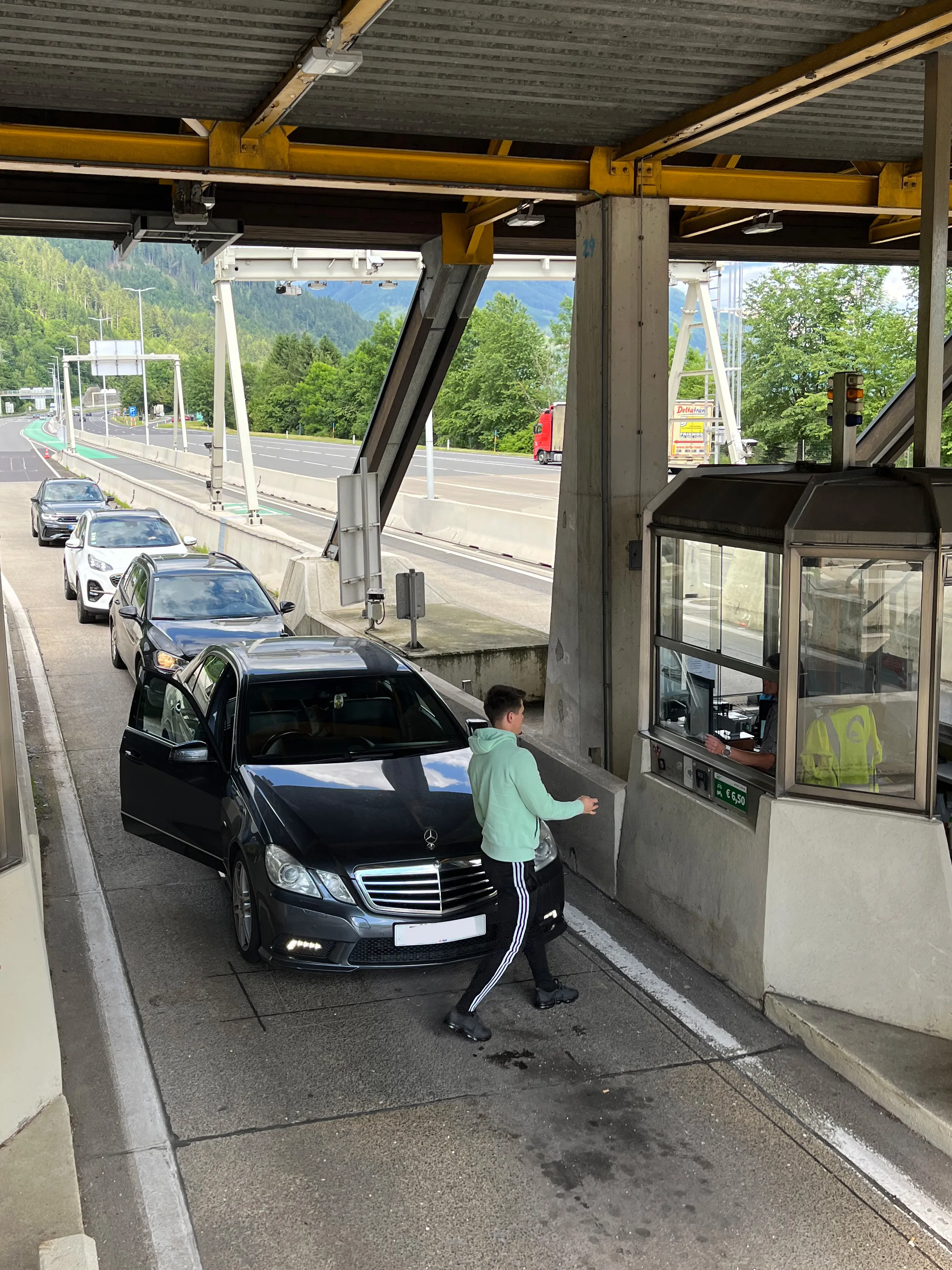 - Man fährt ein Fahrzeug unter 3,5 Tonnen tzGm (technisch zulässige Gesamtmasse) und hat bereits vor der Fahrt online ein Ticket --> Bitte (wenn vorhanden!) ganz links die grüne Spur ohne Schranken benutzen. Wenn es keine grüne Spur gibt, bitte eine Pkw-Spur wählen.