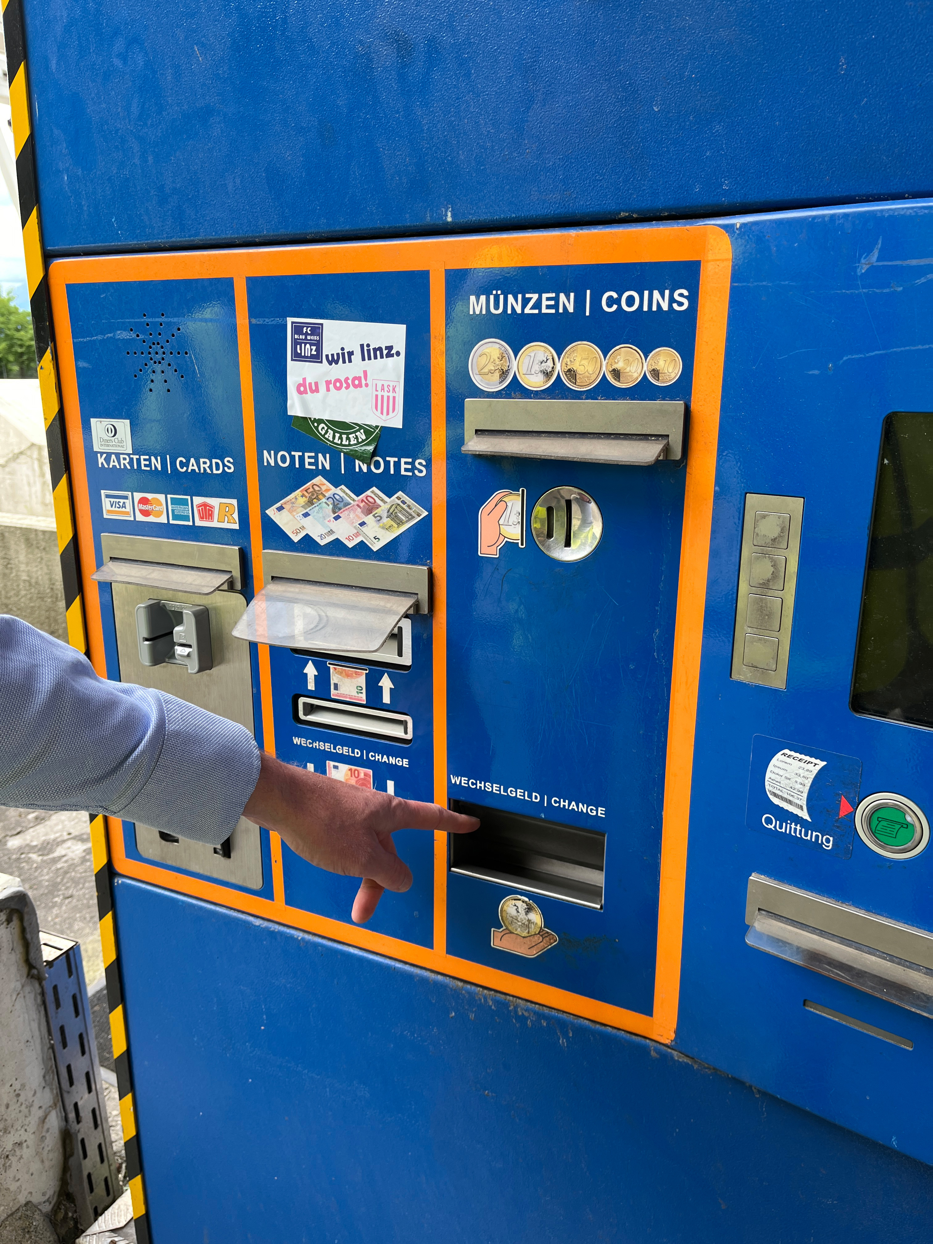 Wer mit einem Fahrzeug unter 3,5 Tonnen unterwegs ist und sich nicht sicher ist, ob sie:er den Streckenmautabschnitt vorab online bezahlt hat, wählt bitte eine der mittigen Spuren mit Automatenkasse oder Personalbetreuung. Wenn für das Kennzeichen ein Mautticket gekauft wurde, öffnet sich der Schranken ohne eine weitere Handlung bzw. ohne einen weiteren Kauf.