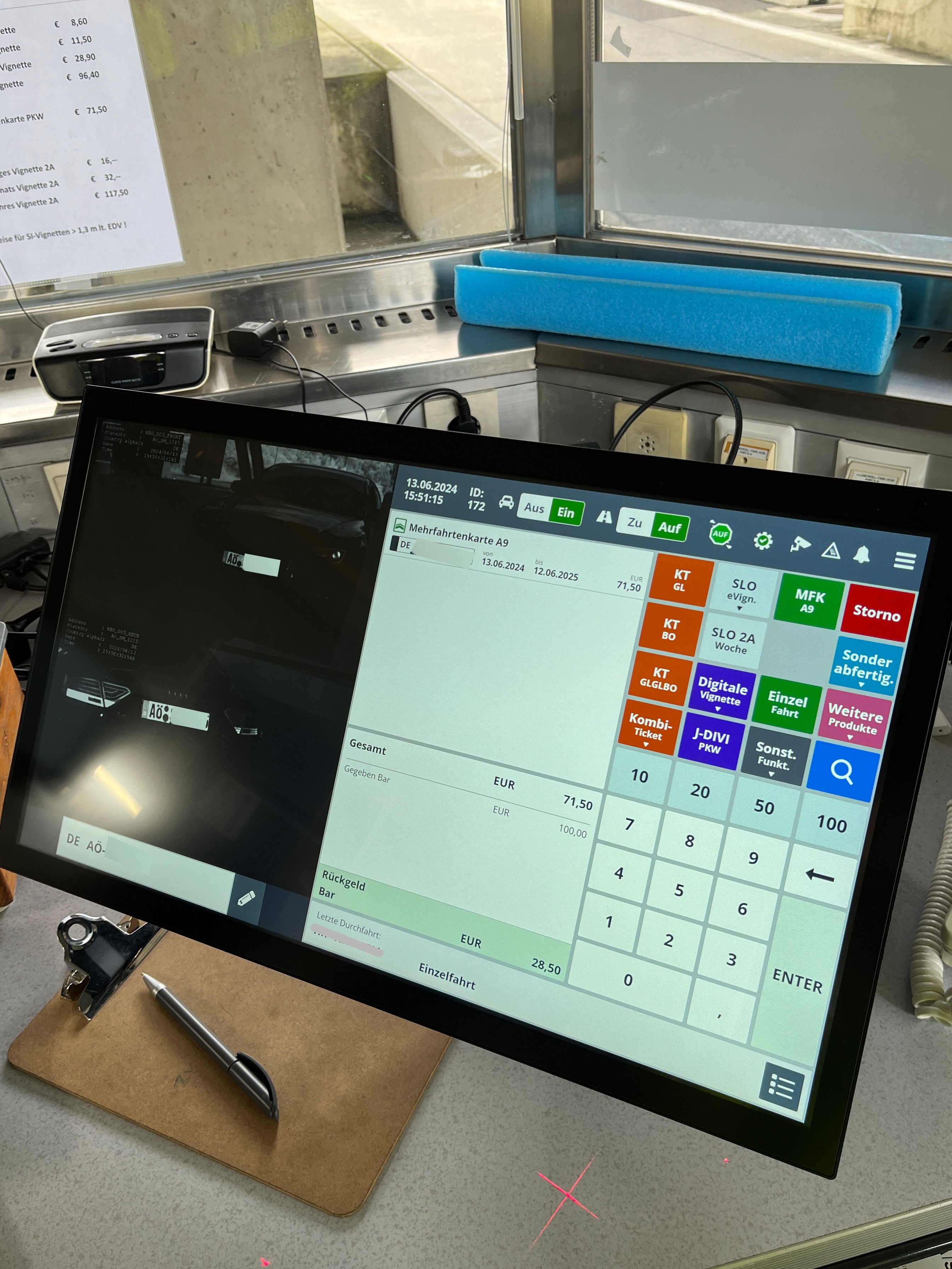 Einen großen Schritt Richtung Zukunft haben wir vor kurzem bereits mit der neuen Mautkassa in den Kabinen gemacht. Das moderne und übersichtliche System, das via Touchscreen bedient wird, funktioniert wie ein Online-Shop und bietet die Möglichkeit, einen Warenkorb zu erstellen. So können bequem Produkte hinzugefügt und gelöscht werden und die Fahrenden können am Außendisplay mitverfolgen, was in ihrem Warenkorb enthalten ist. Eine Front- und eine Heckkamera übertragen nicht nur das Kennzeichen in die Mautkabine, sondern gleichen auch direkt ab, ob und welche Mautprodukte vorhanden sind.