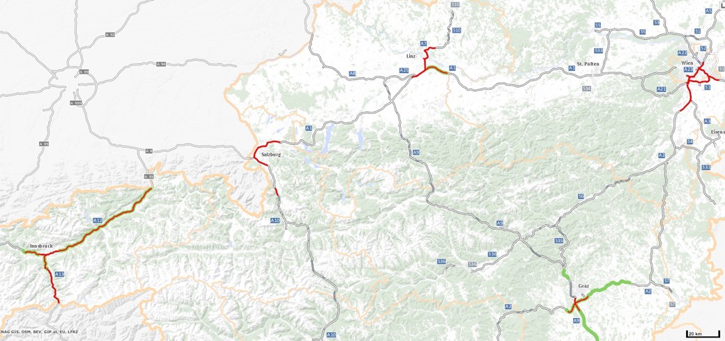 Hauptsächlich setzen wir VBA rund um die Ballungsräume ein, weil hier die Staugefahr naturgemäß höher ist. Folgende Strecken sind VBA-Gebiete: