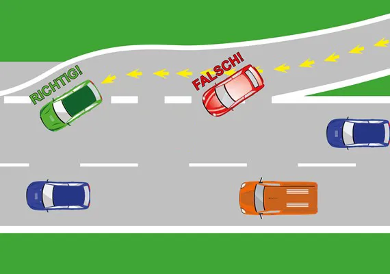 - Fahrerinnen und Fahrer auf der durchgehenden Spur sollten die einordnenden Fahrzeuge hereinlassen.