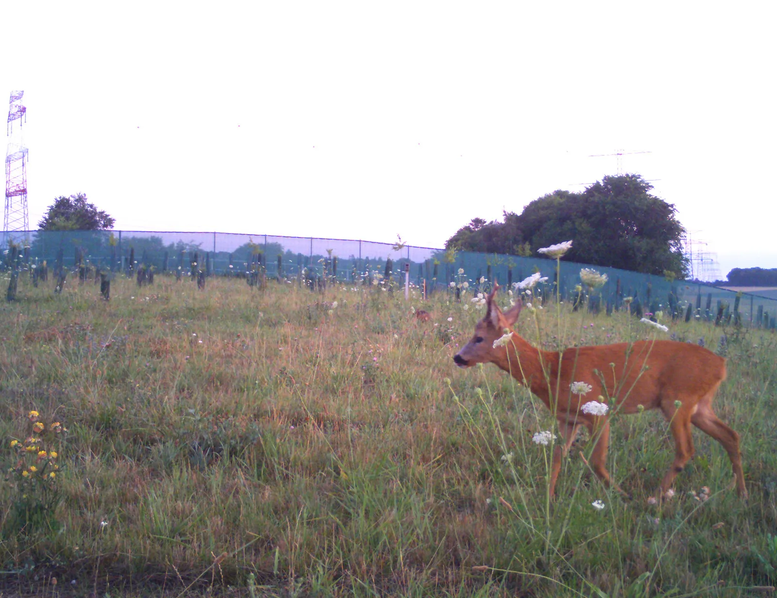 Grünbrücken stellen sicher, dass Großwild wie Rehe, Füchse oder auch Hasen ungehindert ihrer Wege gehen können. Die Lage von Grünbrücken planen wir immer in enger Zusammenarbeit mit Expertinnen und Experten. Auf der A 5 haben wir 20 Grünbrücken gebaut. Und ja, sie werden angenommen! Das zeigen unsere Aufnahmen der Wildtierkameras.