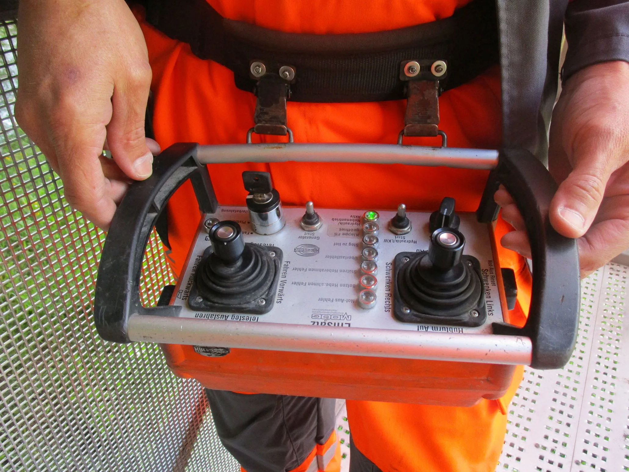 Ein Beispiel: Soll der Arbeitskorb unter der Brücke geschwenkt, gehoben oder gedreht werden, muss ein entsprechender Freigabebefehl per Funk an den Kollegen ins BIG gesendet werden. Und umgekehrt: Will der BIG-Fahrer einige Meter weiter fahren, so sendet er diese Meldung zur Freigabe an seinen Kollegen im Arbeitskorb unter der Brücke. So ist geregelt, dass die Bauwerkskontrollen zur Sicherheit aller Beteiligten erfolgen.