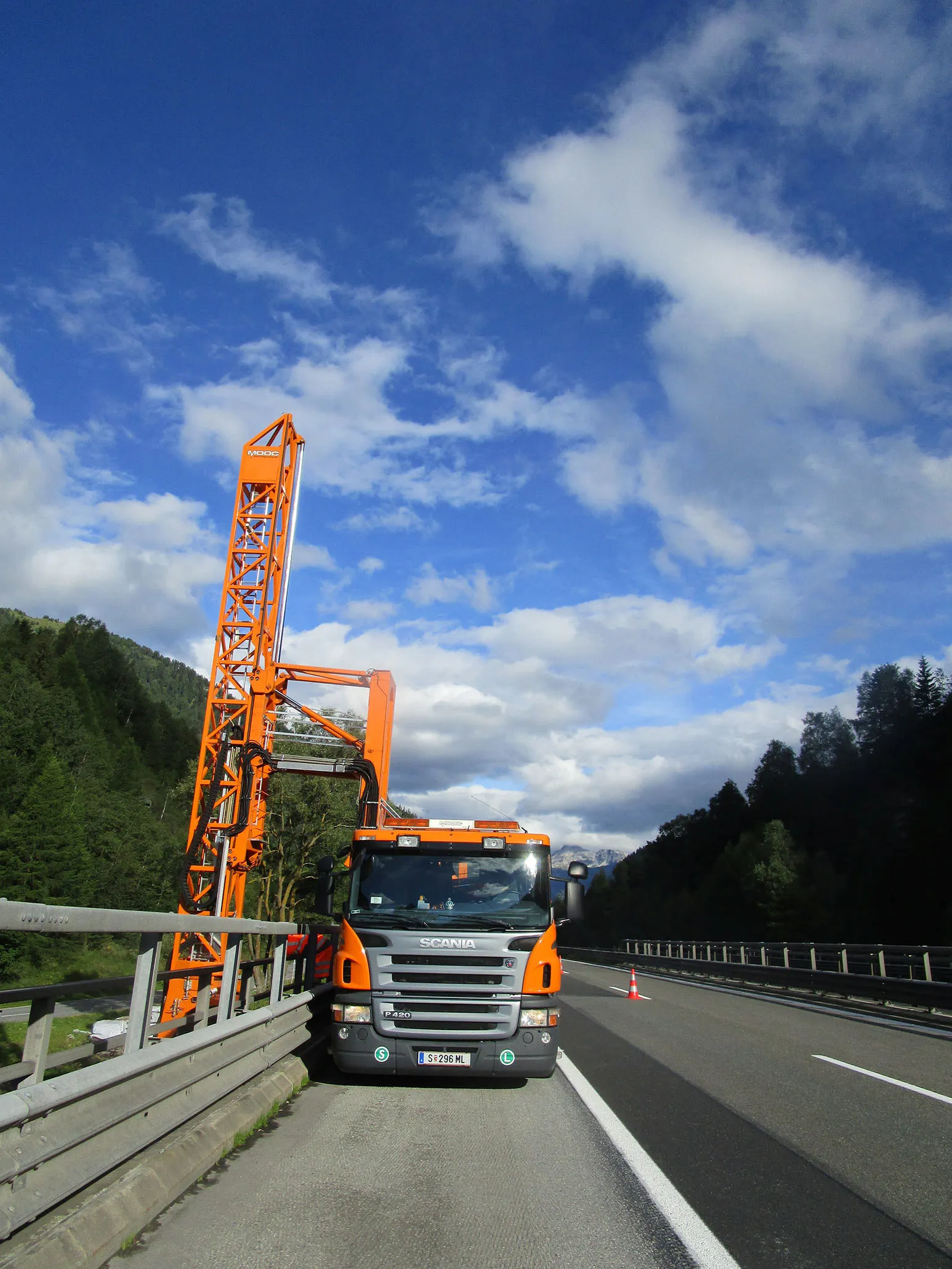 5.765 Brücken befinden sich auf dem gesamten ASFINAG-Streckennetz und diese müssen regelmäßig geprüft beziehungsweise kontrolliert werden. Für die Bauwerksinspektoren ist es, wie sie sagen, Routinearbeit. Sie schwingen sich von dem 44 Tonnen schweren Brückeninspektionsgerät – dem sogenannten BIG – fast täglich hinunter zu den Tragwerken, um deren baulichen Zustand zu checken. Gearbeitet wird großteils im Sommer, also zwischen April und Oktober, es sei denn, es ist „Gefahr in Verzug“. „Dann kannst net sagn, ich fahr nicht, sondern musst auch im Winter, wenn’s kalt ist, in den Korb“, weiß Werner Kaswurm von unserer Erhaltung aus Erfahrung.