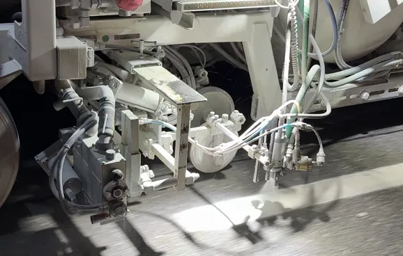 - Sprühdüsen (Airless-Sprühtechnik): Diese Düsen tragen das Markierungsmaterial auf die Fahrbahn auf. Sie arbeiten oft mit Hochdruck (Airless-Technik), um eine gleichmäßige Schicht aufzutragen.