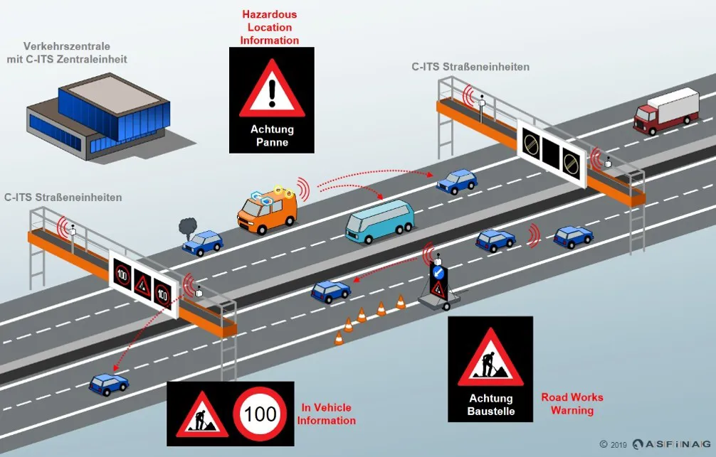Wir haben bereits 2020 damit begonnen, Warnanhänger mit C-ITS-Ausstattung in Betrieb zu nehmen, um digital auf unsere Baustellen und andere Gefahrenstellen hinweisen zu können. Das ist jedoch nur der erste Schritt in der Vernetzung der Infrastruktur mit den Fahrzeugen über C-ITS. In den nächsten Jahren werden über das gesamte österreichische Autobahnnetz verteilt stationäre C-ITS Straßeneinheiten in Betrieb genommen, welche über weitere sicherheitsrelevante Ereignisse warnen. Der Endausbau sieht 525 C-ITS Straßeneinheiten auf dem 2.250 km langen Autobahnen- und Schnellstraßennetz in Österreich vor.