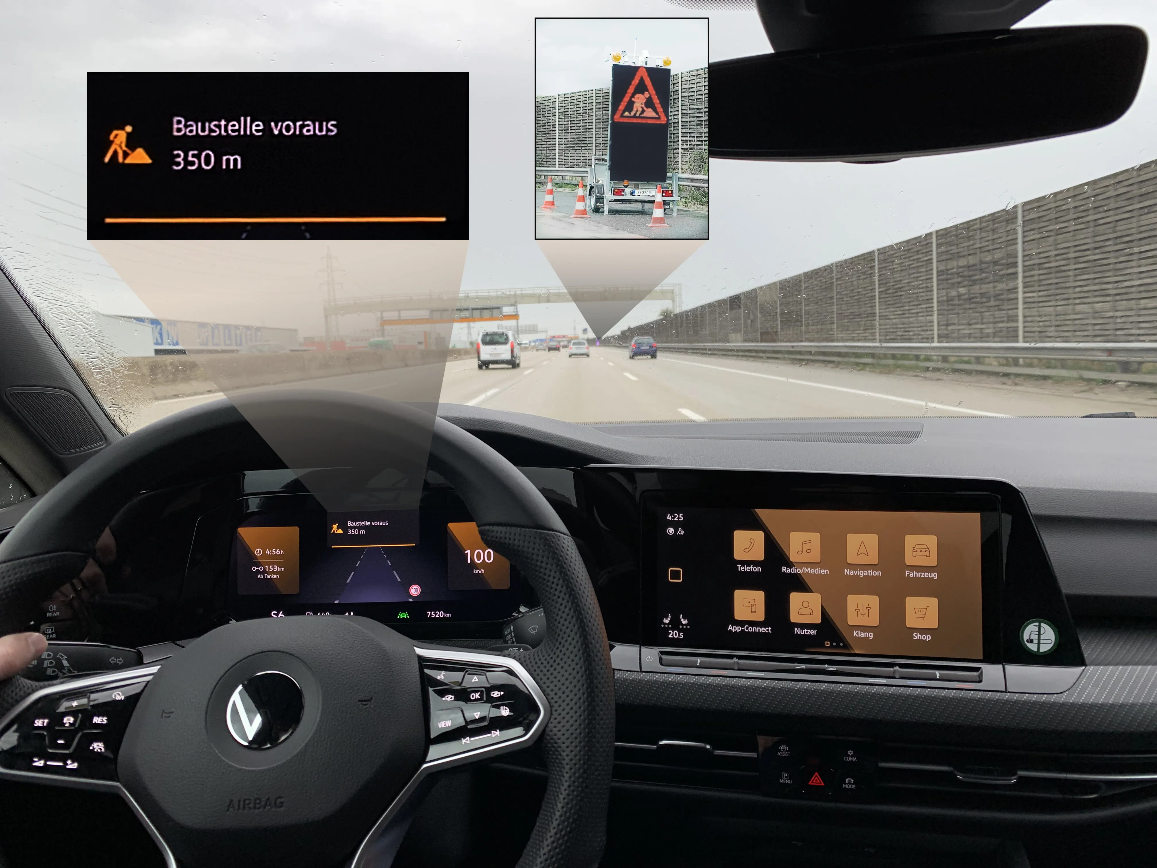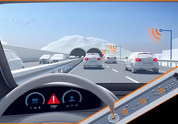Unvorhersehbare Gefahren oder Baustellen stellen für alle Fahrenden eine Herausforderung dar. Verschmutzte oder verengte Fahrspuren, ungewohnte Verschwenkungen und unebene Fahrbahnen sind nicht nur für die Verkehrsteilnehmenden gefährlich, sondern auch für all diejenigen, die in einen Unfall verwickelt wurden oder auf der Strecke arbeiten.1. Gefahrenwarnungen direkt ins Fahrzeug