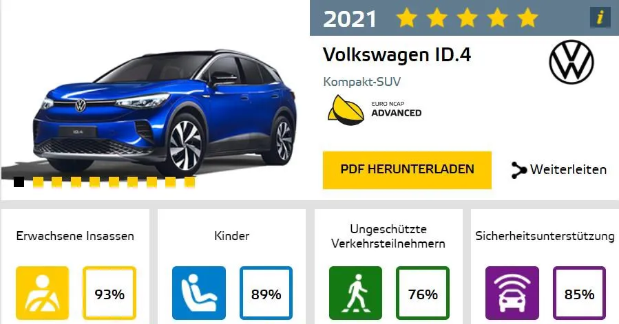 Das Portal für Europäische Sicherheitsbewertung, Euro NCAP, führt regelmäßig Tests zur Überprüfung der Fahrsicherheit durch und veröffentlicht diese für die beliebtesten Autotypen. Bei Ihren Bewertungen 2021 hat Euro NCAP erstmals die Kommunikation von Fahrzeug zu Fahrzeug mit bewertet.