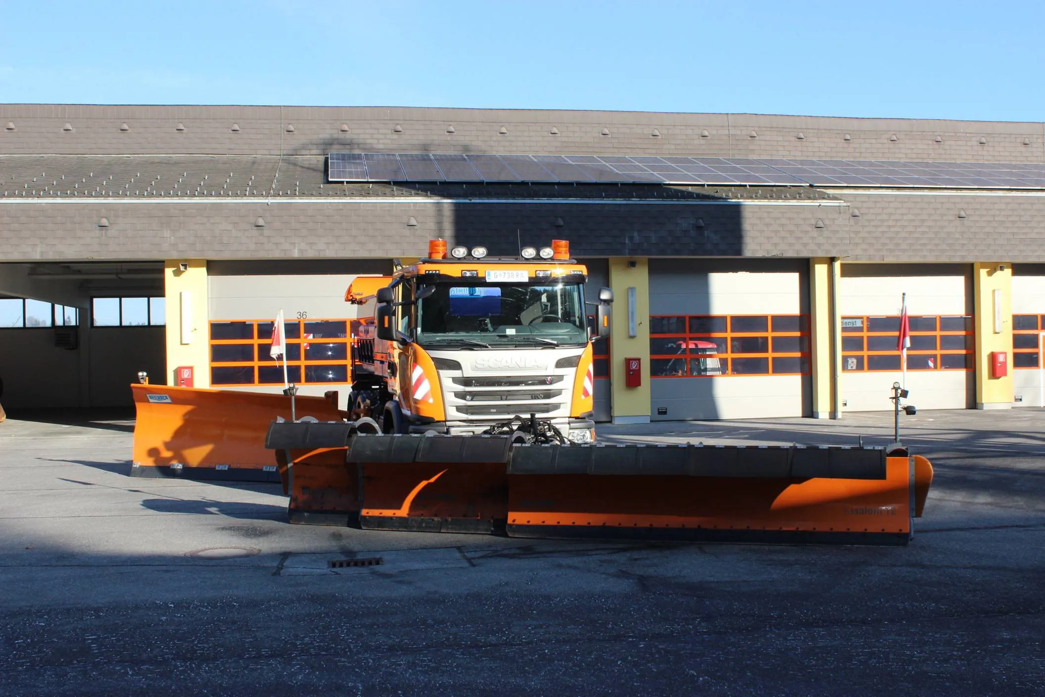 Mit den Giganten unter unseren Einsatzautos, den teleskopierbaren Megapflügen, räumen wir mit nur einem Fahrzeug gleich zwei Fahrspuren auf einmal. So ein Fahrzeug zu fahren ist eine spezielle Herausforderung: Ist der Frontpflug auf seine gesamte stattliche Breite von sechs Metern ausgefahren, schwingt er leicht. Ist der Schnee dann auch noch nass, ist unser Mann am Steuer ganz besonders gefragt. Aber unsere Mitarbeiter sind Profis! Sie, liebe Autofahrerin und lieber Autofahrer, können die Schneepflugfahrer bei ihrer Arbeit aktiv unterstützen: bleiben Sie bitte IMMER hinter unseren Räumfahrzeugen!