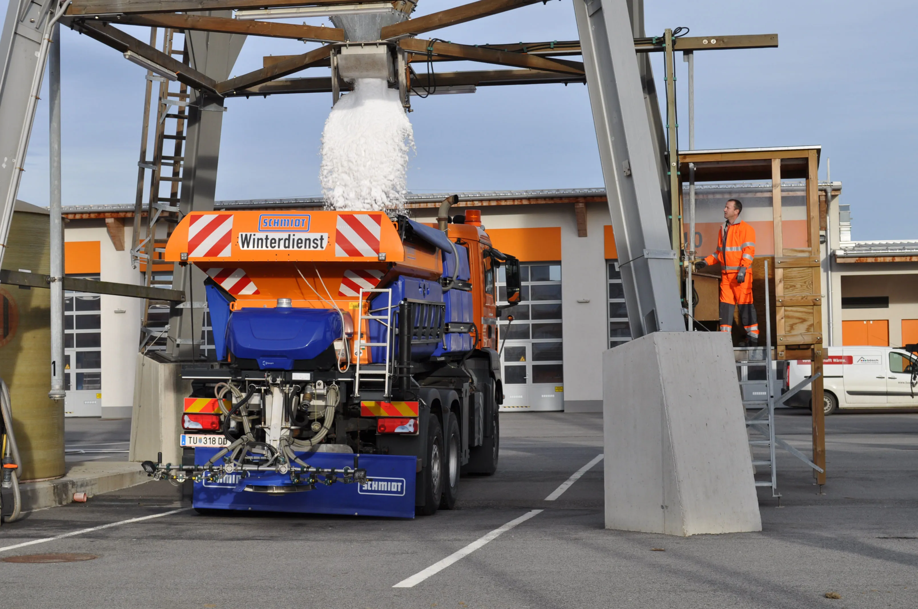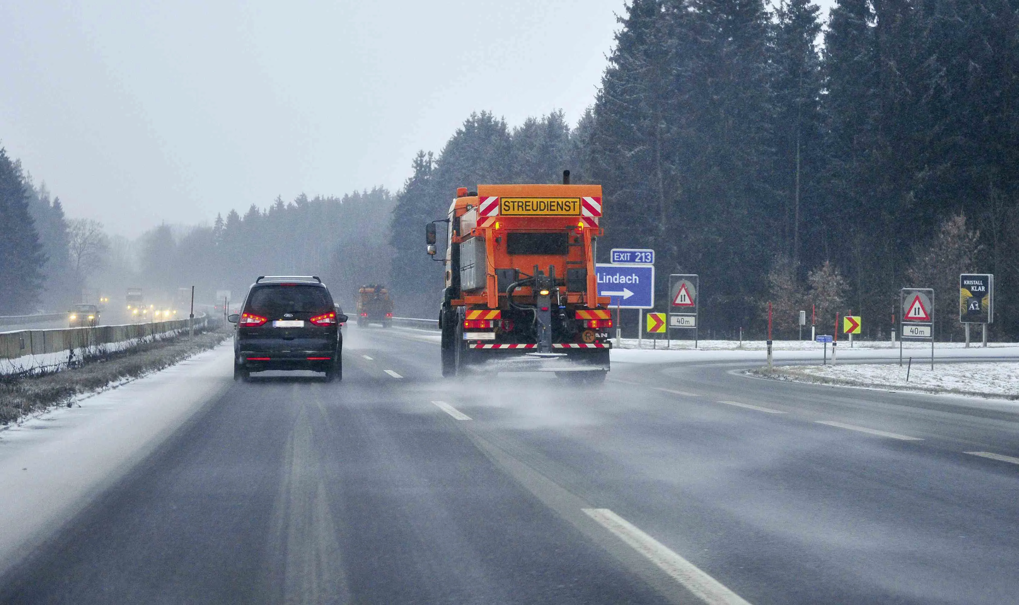 Salz ist für die Autobahnen und Schnellstraßen das beste Streumittel. Wir haben viel probiert, sind aber immer wieder auf das „weiße Gold“ zurückgekommen. Wir nutzen es pur oder angefeuchtet als Sole. Feuchtsalz streuen wir überwiegend vorbeugend. Warum? Ganz einfach, es haftet besser auf der Fahrbahn. Weder Verkehr noch Wind können es verblasen. Besonders wichtig dabei: streuen bevor der Niederschlag kommt – auch wenn die Sonne scheint und die Fahrbahn trocken ist! Denn das feuchte Salz bildet eine Schicht auf der Fahrbahn, die verhindert, dass sich Niederschlag wie Raureif oder Schnee in Form von Kristallen an der Straße festsetzt. Die Fahrbahnoberfläche bleibt so – mit Winterausrüstung – immer gut und sicher befahrbar.