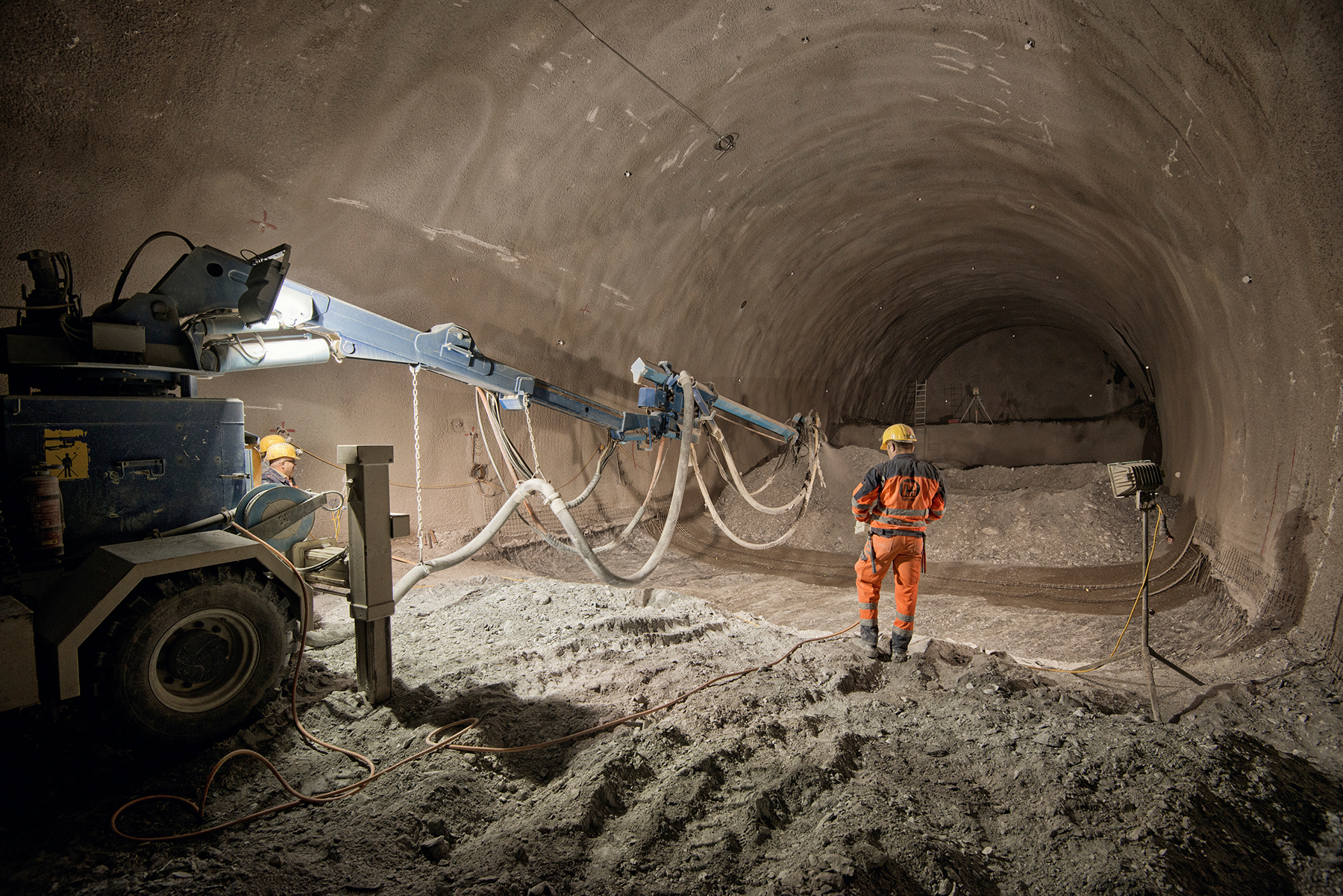 - Schließlich wird der Arbeitsbereich mit Spritzbeton gesichert