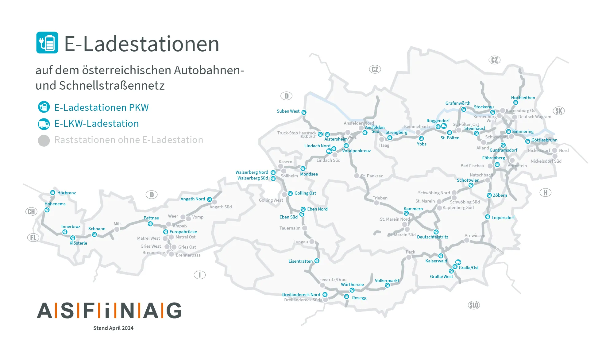 Welche Ladeinfrastruktur gibt es aktuell am ASFINAG-Netz?