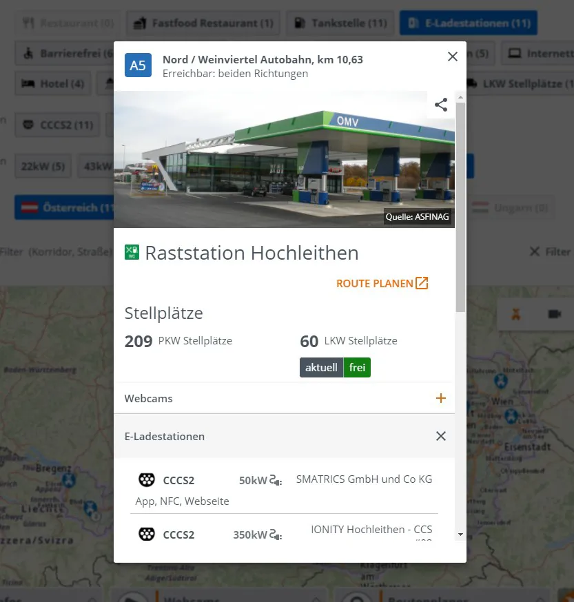 Hier finden Sie zum Beispiel auch detaillierte Informationen zu den angebotenen Ladeleistungen, den verfügbaren Steckertypen, aber auch z.B. zu den Betreibern und den Zahlungsmöglichkeiten.
