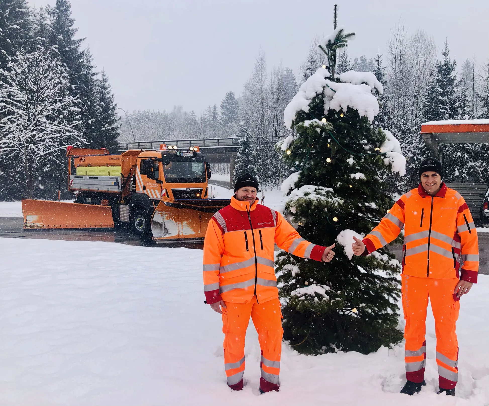 Mario Mühlbacher und Markus Schranzhofer, Mitarbeiter des Streckendienstes der Autobahnmeisterei Vomp sorgen auch am Heiligen Abend und zu Silvester, dass alle gut daheim ankommen. Sie erledigen Kontrollfahrten an der Strecke und sind mit den Räum- und Streufahrzeugen unterwegs. Mario wird an Heilig Abend die Nachmittagsschicht übernehmen, am späteren Abend ist er wieder zu Hause bei seiner Familie, denn um 21 Uhr löst ihn Kollege Schranzhofer ab.