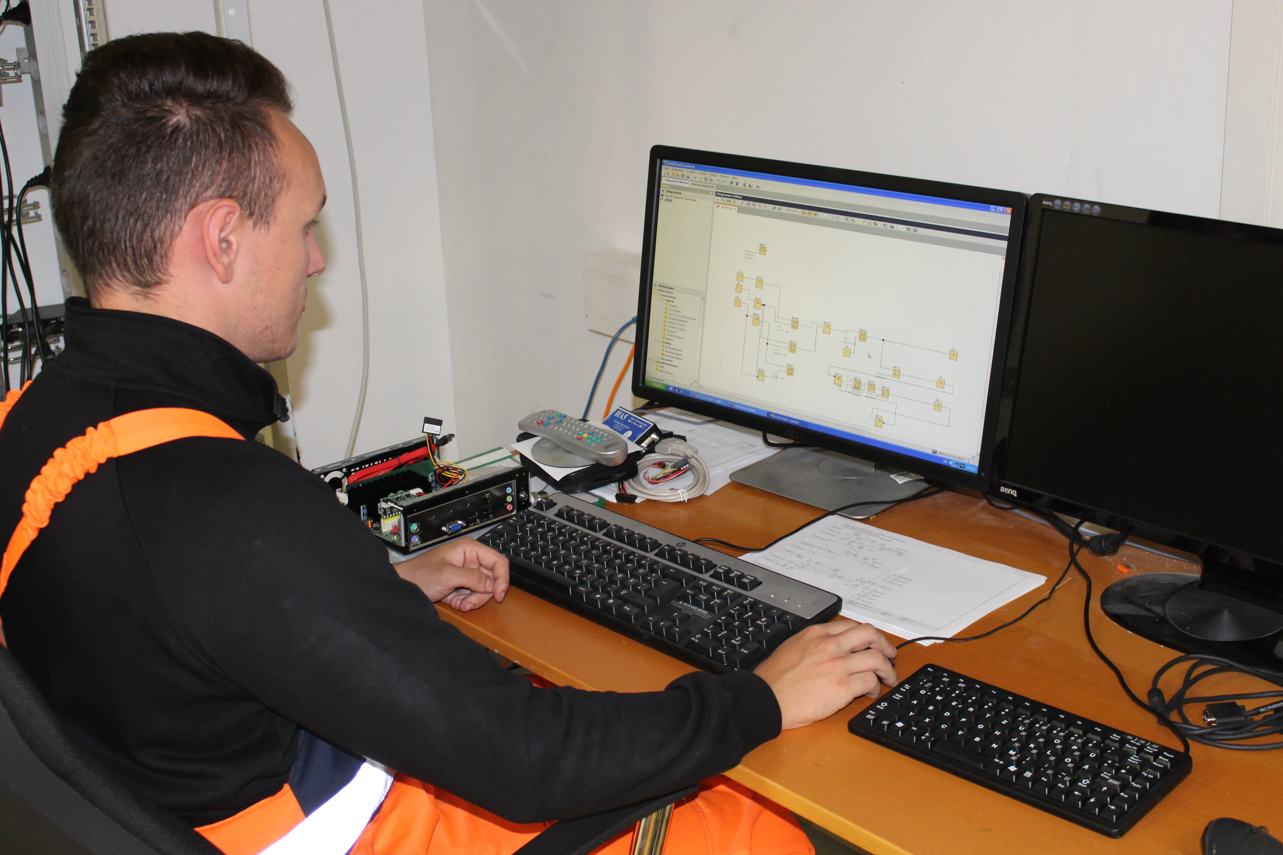 Bei uns ist dieses Wahlmodul die Anlagen- und Betriebstechnik. Dabei lernen die Auszubildenden beispielsweise das Anfertigen von technischen Zeichnungen sowie von Schaltplänen. Auch das systematisches Suchen, Eingrenzen und Beseitigen von Fehlern, Mängeln und Störungen an unseren Anlagen. Alles das ist natürlich bereits softwaregestützt.