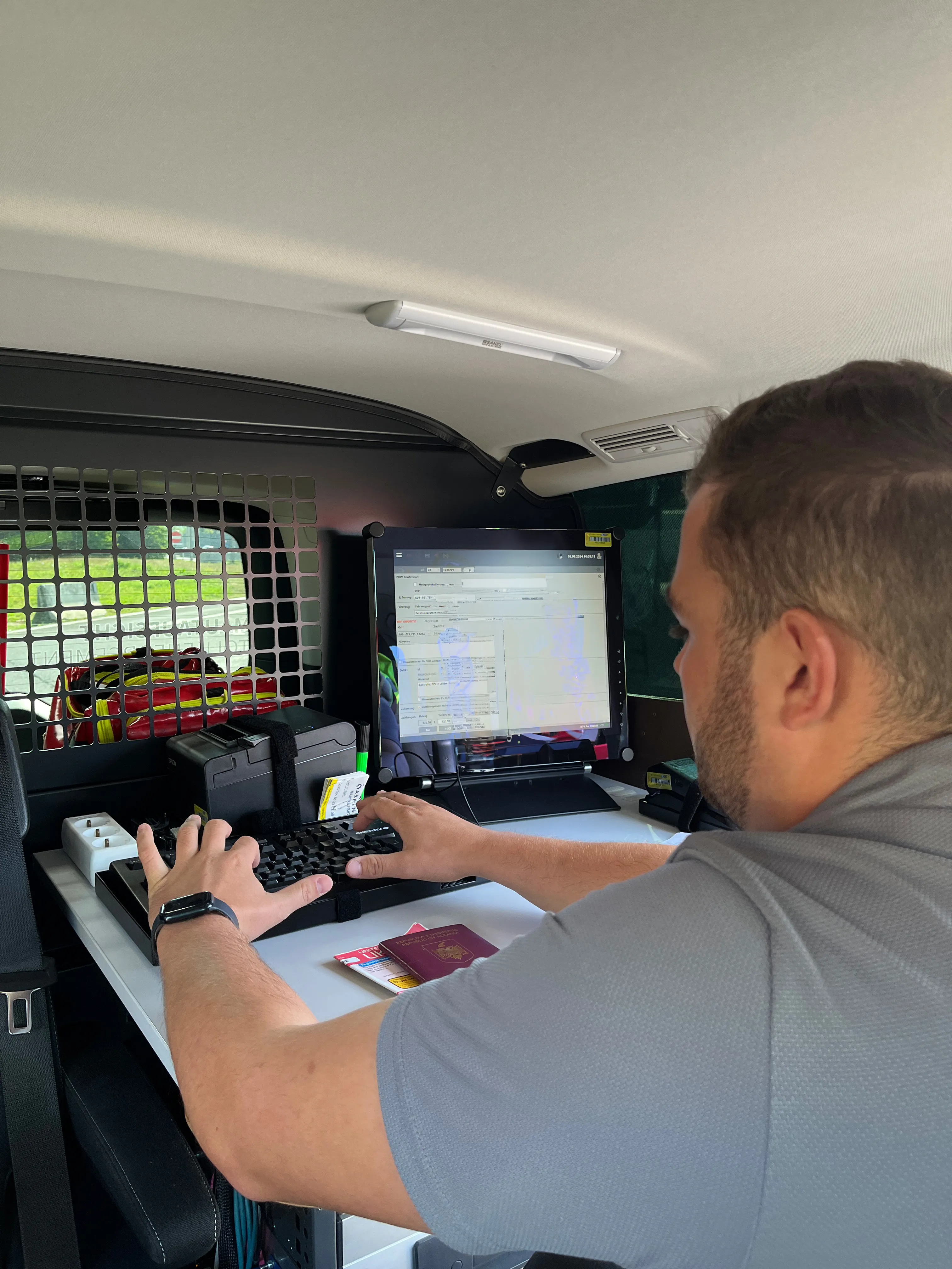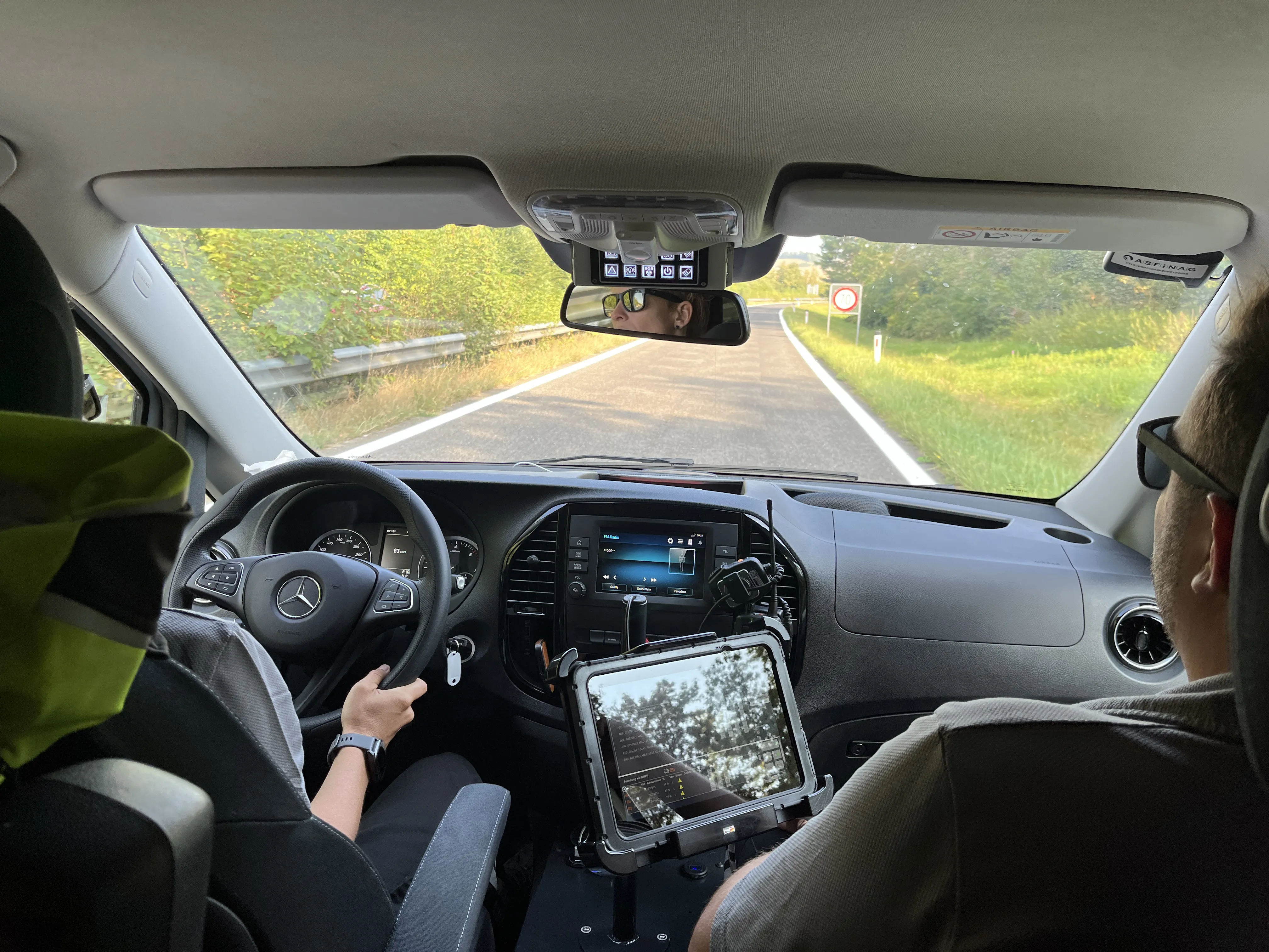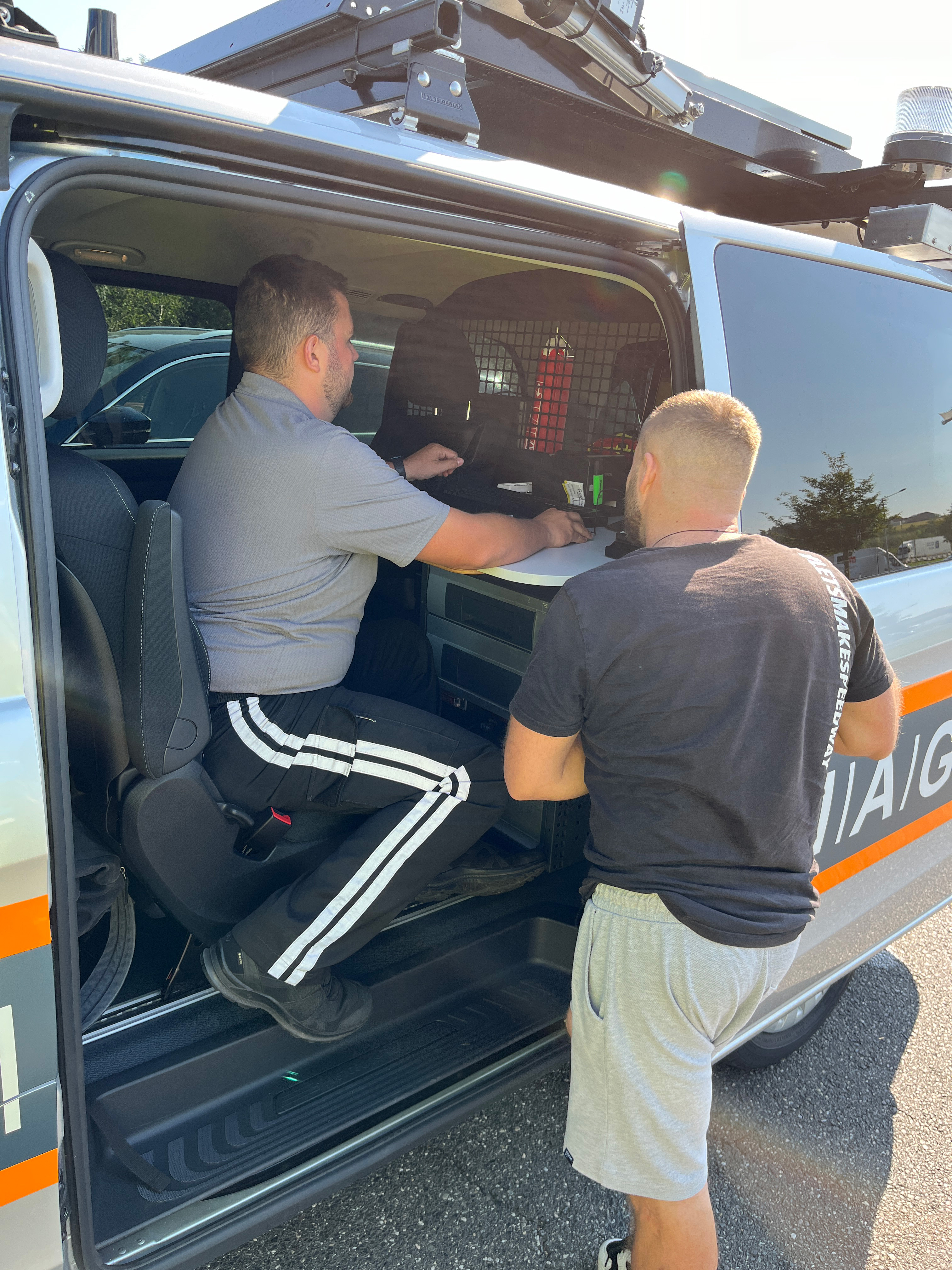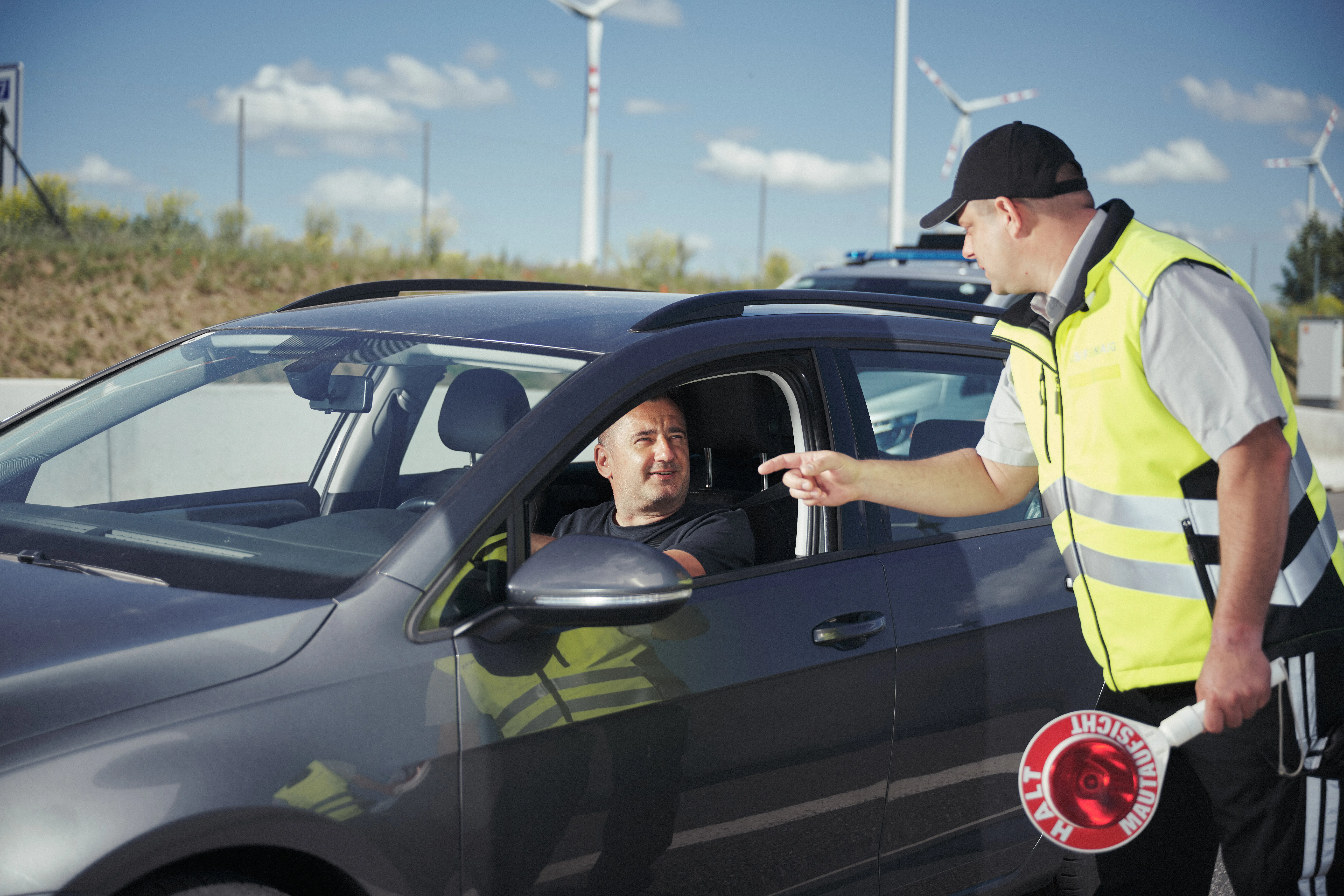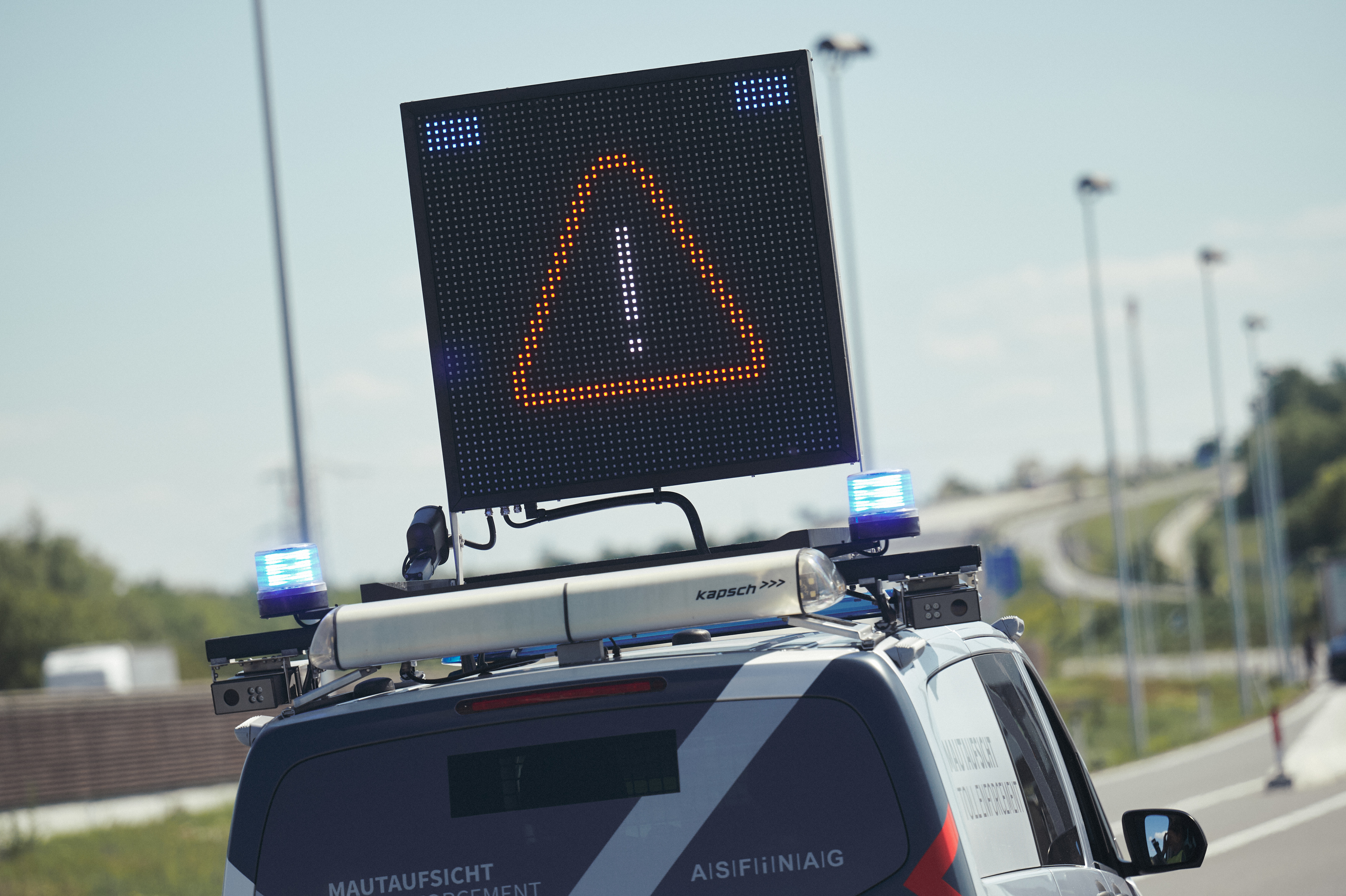 Die Mautaufsichtsorgane sind immer im 2er-Team unterwegs. Während eine:r das Fahrzeug steuert, behält die:der zweite die am Display aufscheinenden Fahrzeuge im Blick und gibt Bescheid, wenn eines ohne gültiges Mautprodukt aufscheint. Diese Daten kommen sowohl über die stationären Maut-Gantrys herein als auch über die Bake am Dach des Einsatzfahrzeugs. Wird zum Beispiel ein Lkw ohne (korrekt eingestellte) GO-Box registriert, bespricht das Team, an welcher Stelle man den Lkw am besten zur Anhaltung auffordert. Dort fahren sie vor ihn und weisen ihn mit der Heckklappschrift zum Folgen auf. Mit dem Lkw im Schlepptau geht es dann zum nächstmöglichen Anhalteplatz, um sich genauer anzuschauen, warum die Maut nicht korrekt entrichtet wurde. Dafür gibt es viele Möglichkeiten: Von der nicht korrekt montierten Box, die daher nicht vom Gantry erfasst wird, über zu wenig aufgeladenes Guthaben bis zur falsch eingestellten Achsenzahl. Gemeinsam mit der:dem Kraftfahrer:in klären die Mautaufsichtsorgane die Ursache, heben die Ersatzmaut ein und helfen dabei, dass das Fahrzeug möglichst zügig ohne erneute Probleme weiterfahren kann. Denn die Teams wissen natürlich, dass Stehzeiten in der Transportwirtschaft Kosten verursachen.