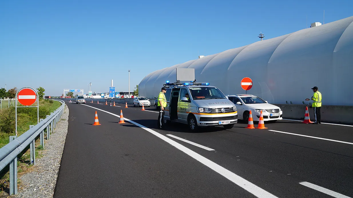 Während viele Fahrzeuge mit gültiger Vignette die Kontrolle passierten, winkte Christopher ein weiteres Fahrzeug zur Seite.