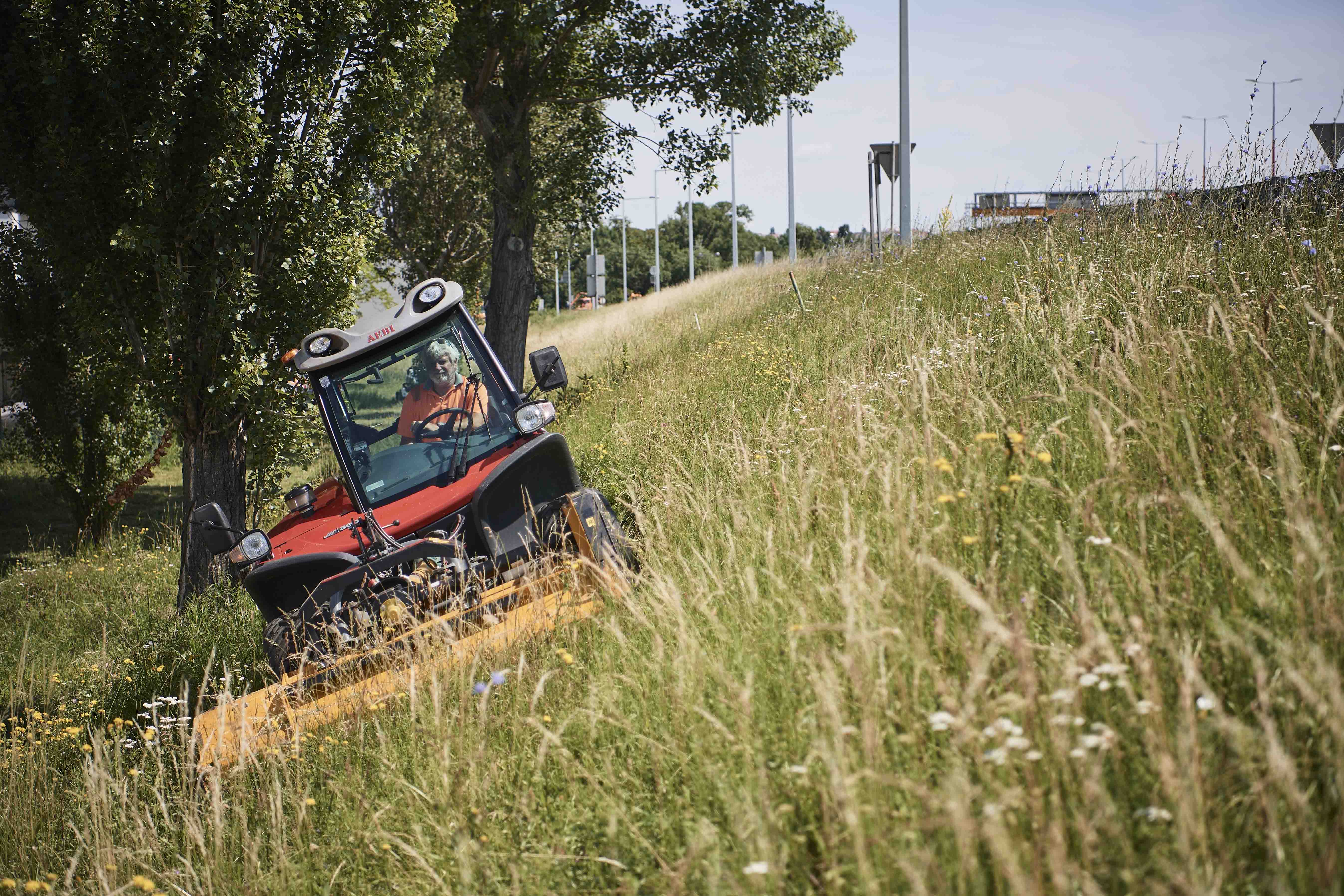 „Alles, was man als Autofahrerin oder Autofahrer als lästig empfindet, sind wir“, beschreibt Christian Schwab den Sommerdienst lachend. „Dazu zählen Grünraumpflege, Absperrungen, Gehölzschnitt, Absicherungen für das Bauwesen, Überprüfung und Reinigung von Entwässerungssystemen, eben die komplette Wartung und Erhaltung des Zuständigkeitsbereiches.“ Und das sind in seinem Fall stolze 395 Fahrstreifenkilometer, mit dem Plabutschtunnel der längste zweiröhrige Tunnel Österreichs sowie das Einzugsgebiet rund um Graz mit den Knoten West und Ost. Sein Team schwärmt täglich mit Spezialfahrzeugen wie Aufsitzmäher, Forstmulcher oder Unimog aus, um für den reibungslosen Betrieb und die bestmögliche Verkehrssicherheit zu sorgen.