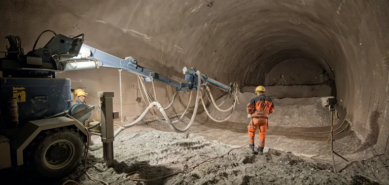 - Schließlich wird der Arbeitsbereich mit Spritzbeton gesichert